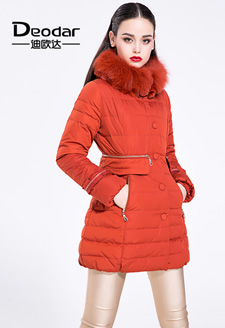 迪歐達(dá)毛領(lǐng)修身時(shí)尚中長款羽絨服
